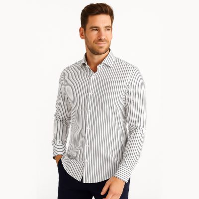 White Reverse Fine Stripe Cotton Dress Shirt
