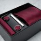 Mens Tie Cufflinks Handkerchief Tie Pin Gift Box Set Red Wine
